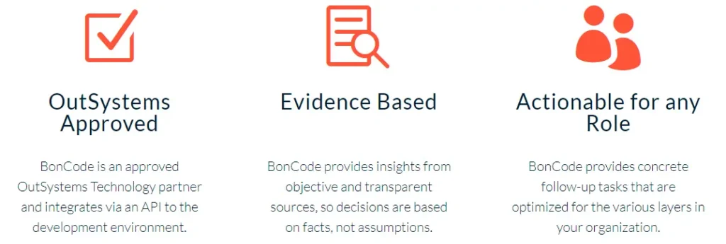 “If we were buying applications, we’d demand quality, and it’s no different just because we build our own software. Quality determines the experience we provide to customers and users, and it directly correlates to developer productivity. BonCode gives us the objective facts and industry-standard benchmarks needed to drive quality and productivity right across our OutSystems software factory, one sprint after another.”